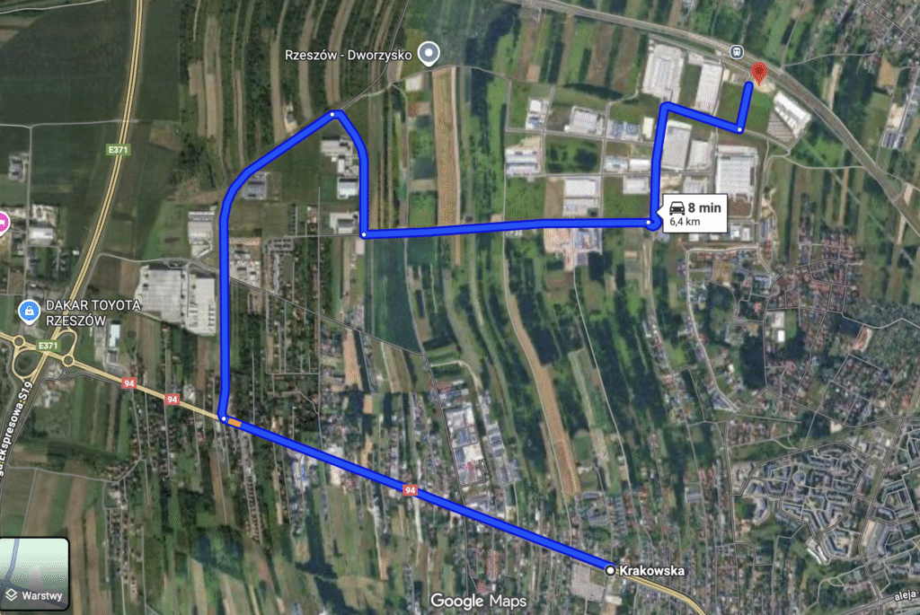 Od strony ulicy Krakowskiej – skręt na światłach w ulicę Ludwika Chmury, następnie wjazd w ulicę Inwestycyjną, następnie w ulicę Technologiczną do ronda Coopera. Na rondzie Coopera trzeci zjazd w ulicą Biznesową do Nas!