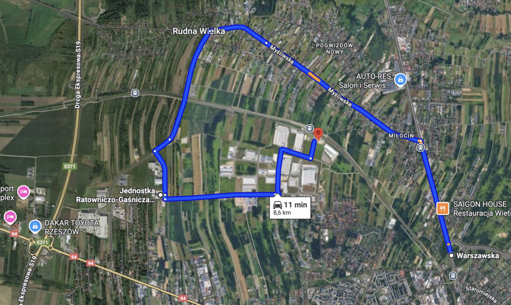 Dojazd od strony Rudnej Wielkiej – w ulicę Ludwika Chmury następnie wjazd w ulicę Inwestycyjną, następnie przejazd ulicą Technologiczną do ronda Coopera. Na rondzie Coopera trzeci zjazd i ulicą Biznesową do Nas!